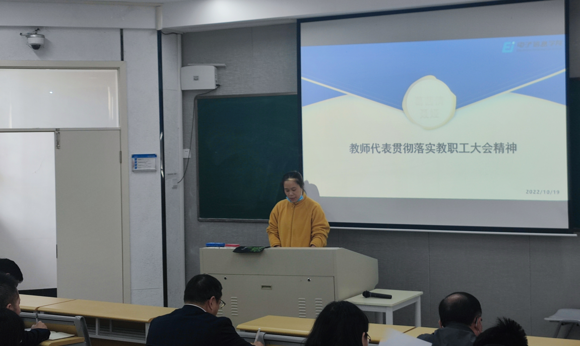 校党委委员、副校长应晓清副校长就大会作出重要讲话,他指出要结合我校的实际发展情况,结合当前实际工作,认清短板和不足,解放思想深入思考。应校长主要从“为什么做”,“怎么做”2个方面进行深入探讨。首先要明确学校组织贯彻落实教职工大会精神活动的目的和意义,以居安思危的意识,立足学校,专业和个人的发展角度深刻反思,凝聚“工商共识”,多动脑筋,多想办法,共同推动学校高质量发展。其次,围绕“怎么做”的问题,从思想,行动,举措3个方面进行说明。每一位教师在思想上要高度重视起来,学校第二次党代会后成效显著,世界百年未有之大变局进入加速演变期。在行动上要快起来,活动研讨要更加深刻,呼应时代需求,跟上时代步伐。举措上要实起来,摸清优势和短板,推动学校建设更高质量发展。立足个人成长和专业建设,以双高校建设为基础目标,力争学校发展更大进步。