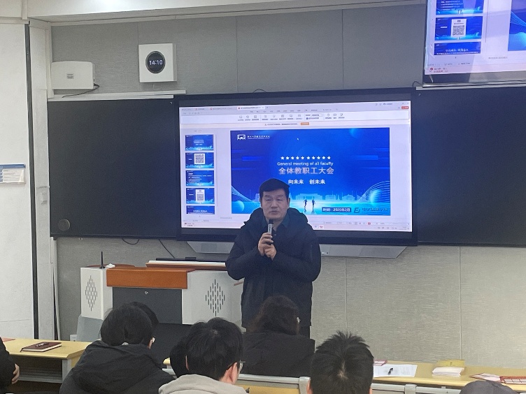 2025年2月26日下午13:30-14:30,电子信息学院全体教职工新春第一会在思齐楼22B7召开,校领导张鹏飞出席了本次会议。会议由党总支书记张青波主持。