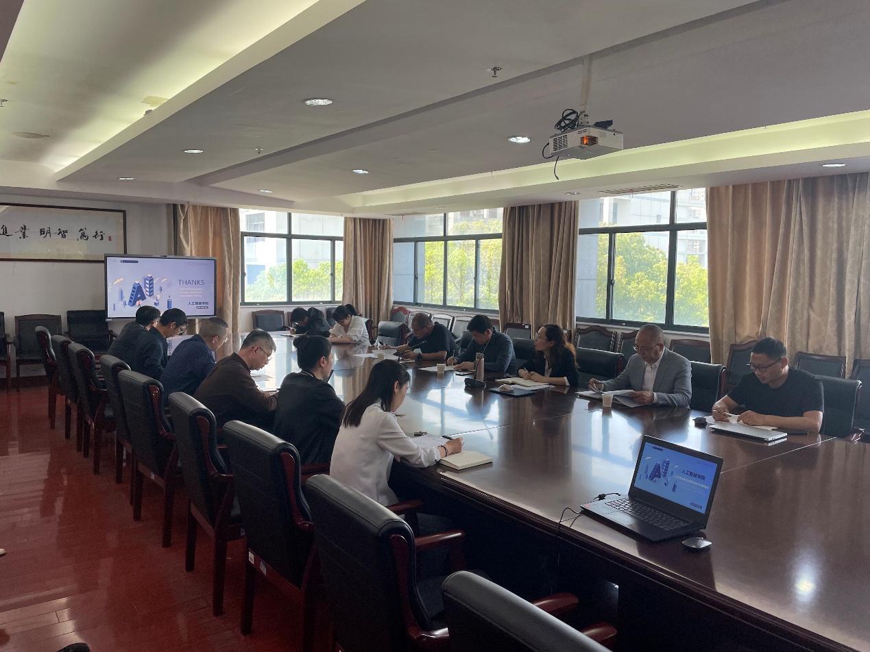最后,张鹏飞副校长进行了总结发言。他要求人工智能学院要更加主动的承接学校的各项工作任务,围绕“人工智能”主线加强协同,进一步理清工作思路,凝聚团队力量形成合力,努力实现工科专业群的协同发展,他同时还希望学院全员保持良好状态,以钉钉子的精神,找准路径落实举措,为学校贡献智慧和力量。
