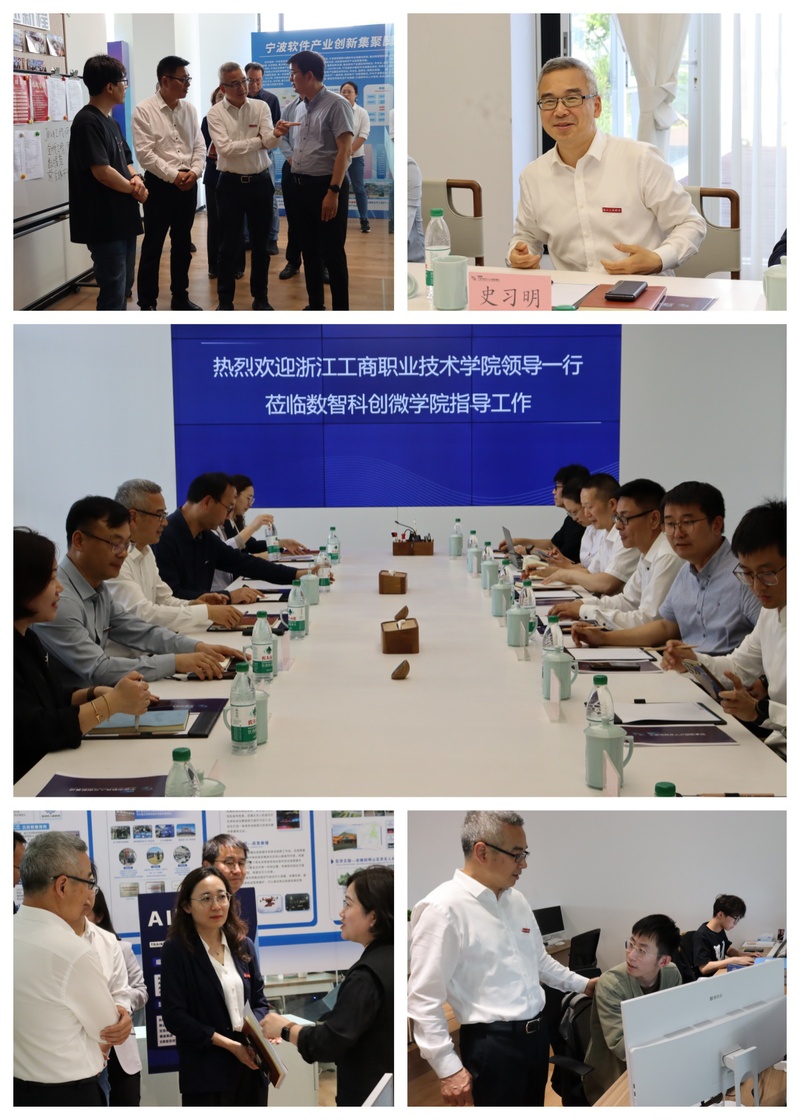 为深入推进产教融合落实落地,深化“一体、两翼、多点”办学格局, 4月23日下午,党委书记史习明、副校长、党委委员楼晓东、党委委员任一波,相关职能部门负责人、学院负责人等领导一行,到 “数智科创”微学院走访,实地参观了微学院办公驿站、培训室、项目孵化区、云上信息服务中心以及学生实习配套设施等,现场了解建设实施情况,与入驻学生交谈。实地了解项目建设情况,指导推进建设工作,与企业深入交流,共商人才培养与合作发展大计。
