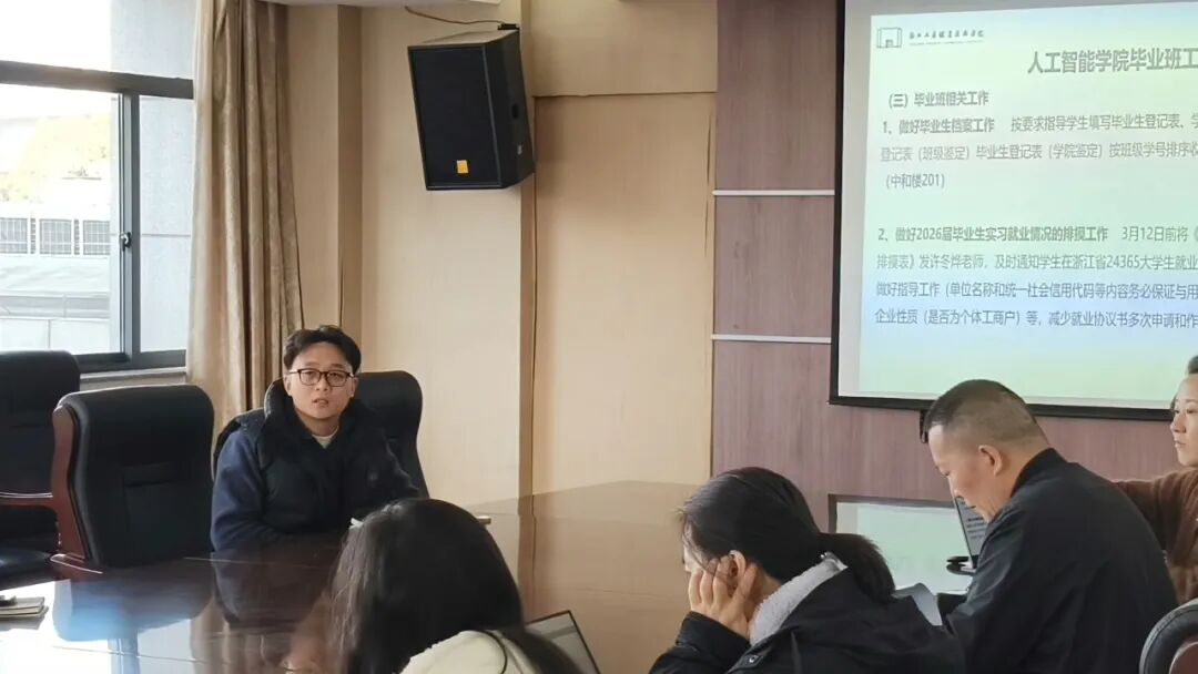 为进一步夯实学生管理根基,统筹部署新学期班主任工作,近日,人工智能学院期初班主任工作会议于中和楼314会议室顺利召开。学院领导班子成员、全体班主任及辅导员齐聚一堂,共同交流新学期学生工作,为全年工作开好局、起好步凝聚合力。