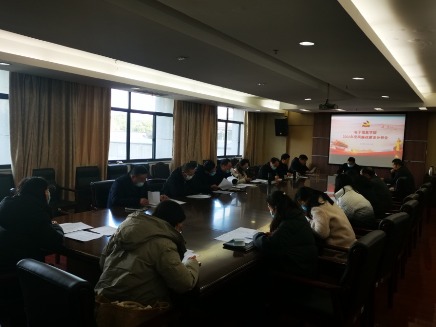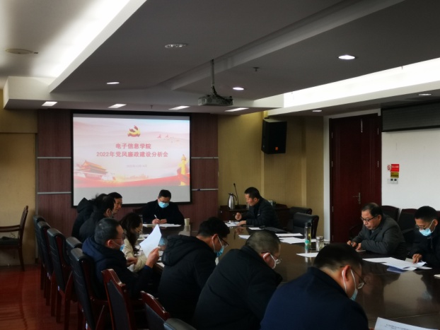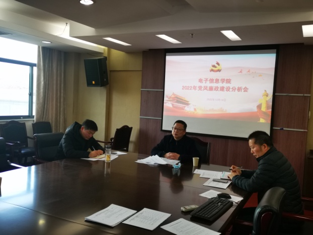 学院2022年党风廉政建设情况分析会于2022年12月14日在中和楼314召开,联系校领导应晓清、学院领导班子成员、综合办主任、组织员、各基层教学组织负责人、2022年各类重大项目负责人出席到了本次会议,会议由电子信息学院党总支书记张鹏飞主持。
