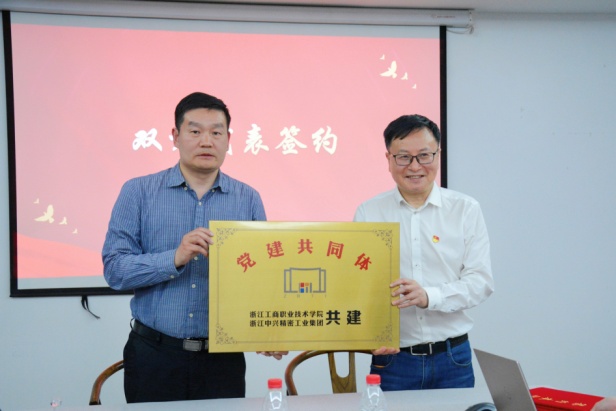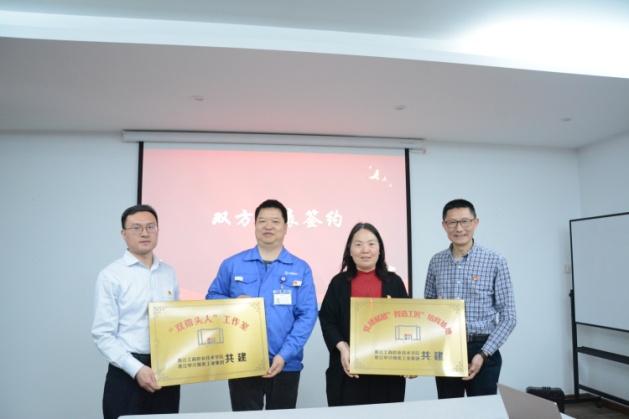 随后,由胡列年、张鹏飞进行党建共同体揭牌、签订合作意向书,校企双方党支部书记进行党建赋能“智造工匠”培育基地和“双带头人”工作室揭牌。