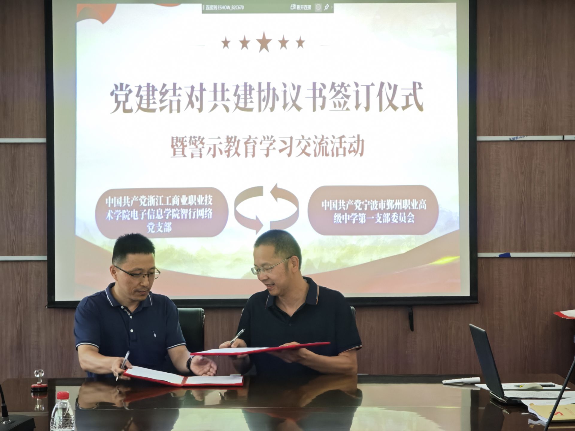 签约仪式后,智行网络支部邀请共建单位共同学习党中央八项规定警示教育材料,双方围绕党风廉政建设展开讨论交流,进一步强化纪律意识,筑牢思想防线。