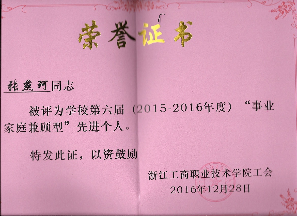 智能电子学院、汽车服务学院教工张燕珂老师荣获“事业家庭兼顾型”先进个人