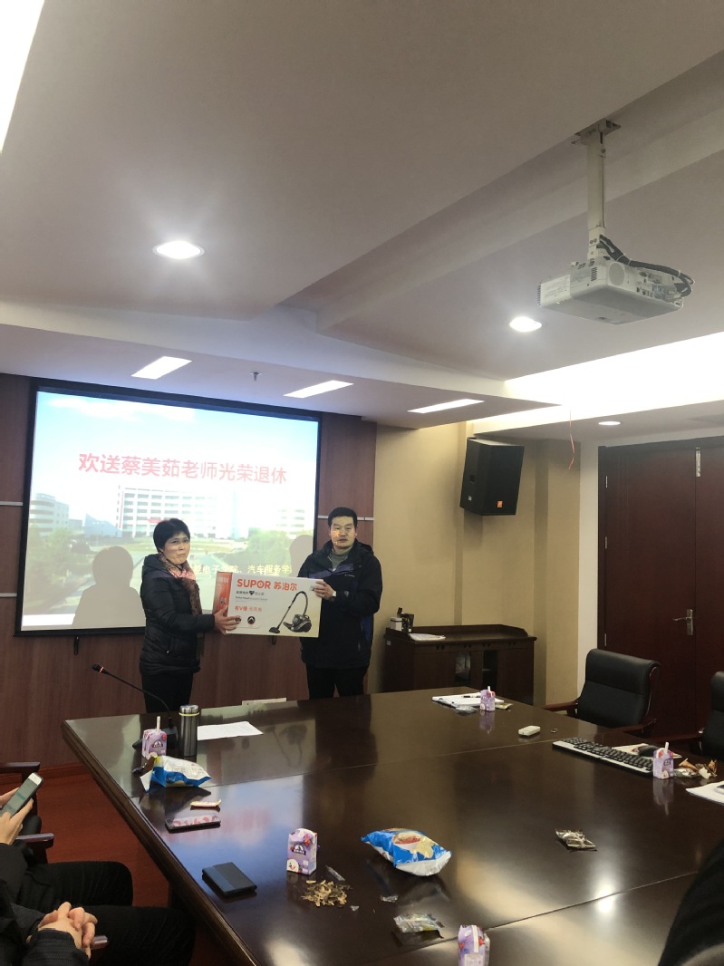 在欢送会最后,学院书记代表工会赠于蔡老师纪念品,并衷心祝福蔡老师身体健康,长寿~退休后的生活更充实、更快乐~欢迎蔡老师常回家看看~